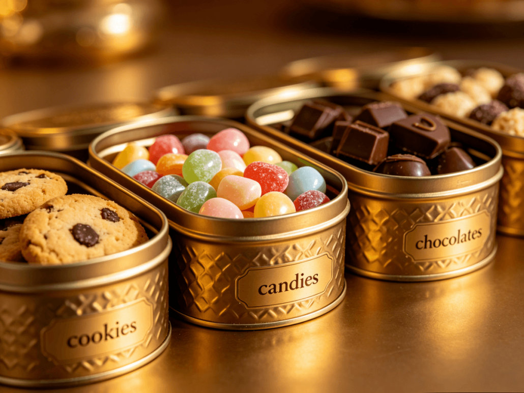 Custom sizing becomes essential when a product possesses a unique shape or density. For instance, fragile cookies may require greater headspace or a wider tin profile. Assorted candies might necessitate a shallower container with a larger surface area. Chocolate gift boxes may require packaging equipped with dividers or inserts. In all these cases, you can fully customize food tins to fit the specific contents. We assist our clients in designing the optimal tin dimensions by taking into account the product’s actual physical size, packaging objectives, and retail expectations.